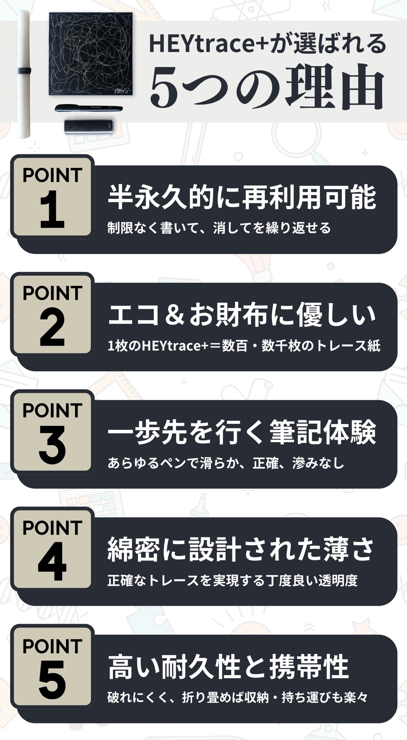 その結果、HEYtrace+に適した筆記具をご紹介します。